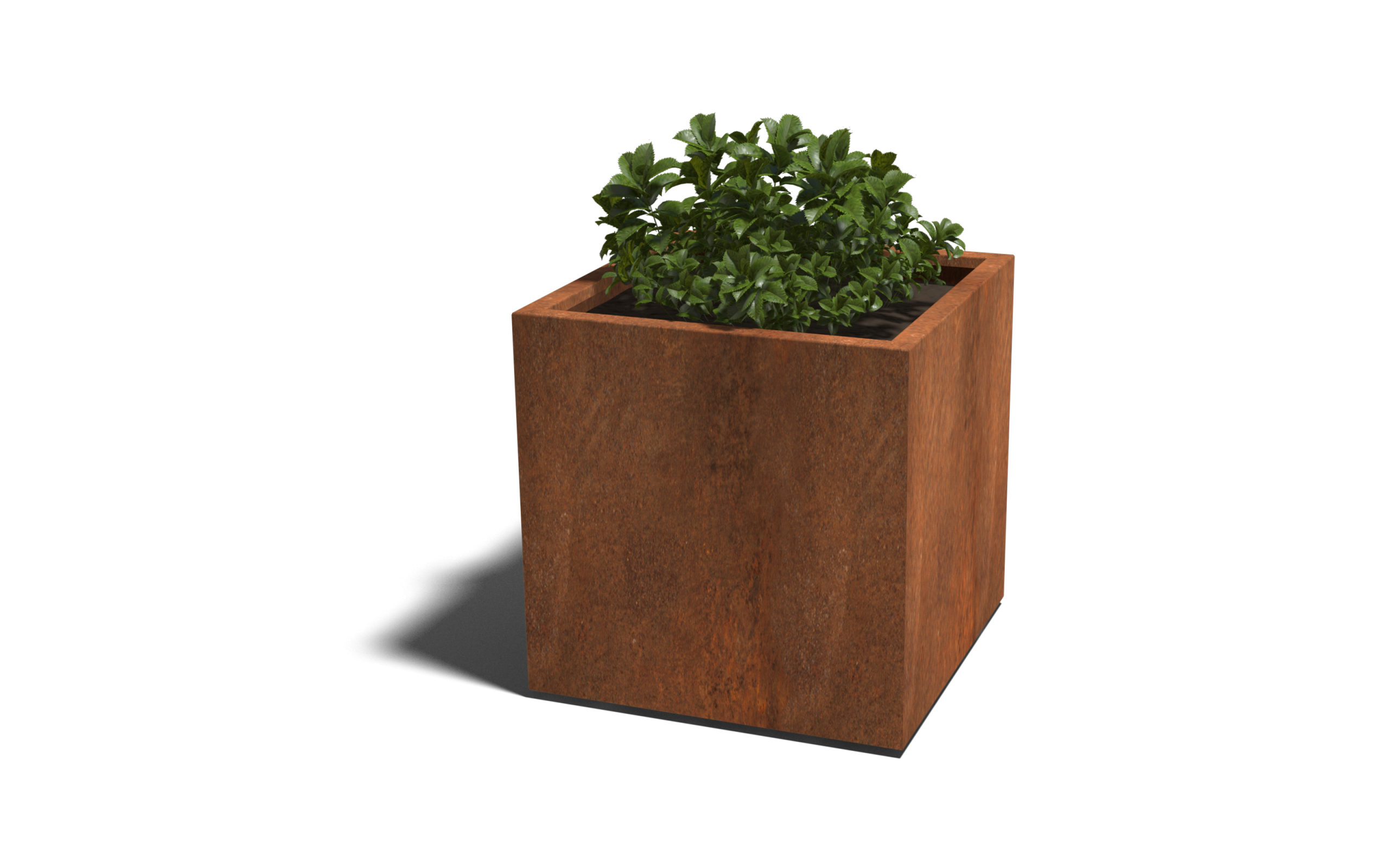 Deze houtopslag voor buiten is gemaakt van duurzaam Cortenstaal, dat een natuurlijke roestlaag ontwikkelt voor bescherming en een robuuste, warme uitstraling.
